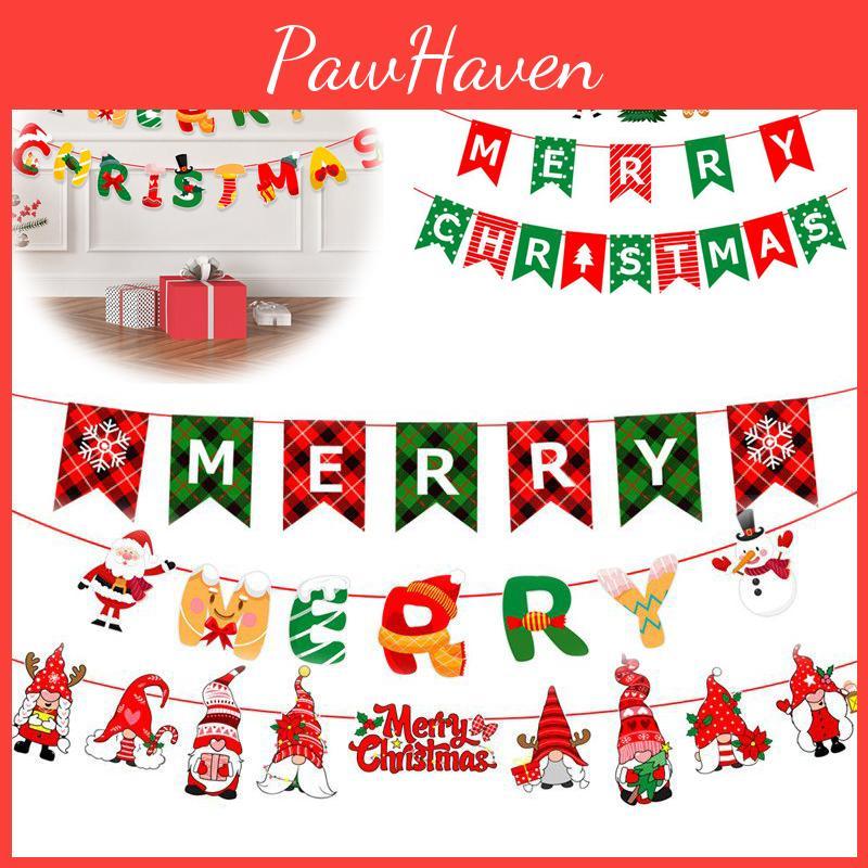 Colorful Christmas Banner Flag Decor Featuring Santa And Elk For Festive Home Ornaments