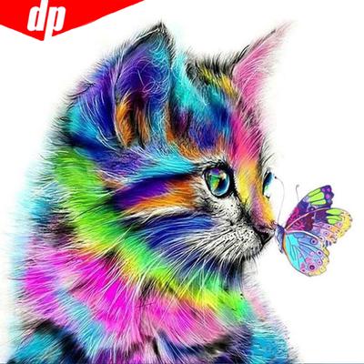 5D DIY Diamond Painting Cross Stitch Colored Cat Diamond Embroidery Mosaic Decor