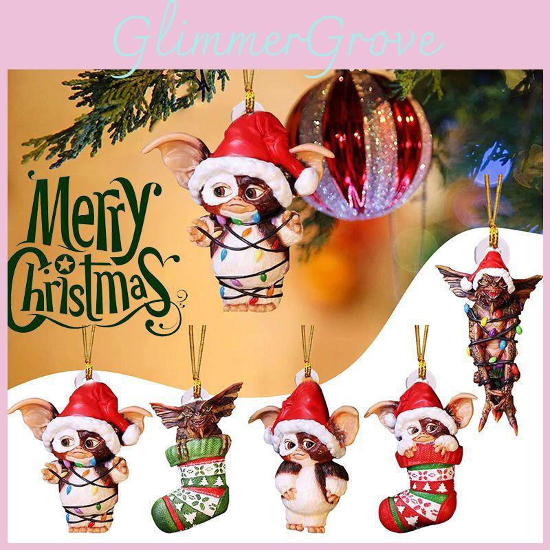 Merry Christmas Gremlins Gizmo Acrylic Santa Hat Pendant Xmas Tree Decor
