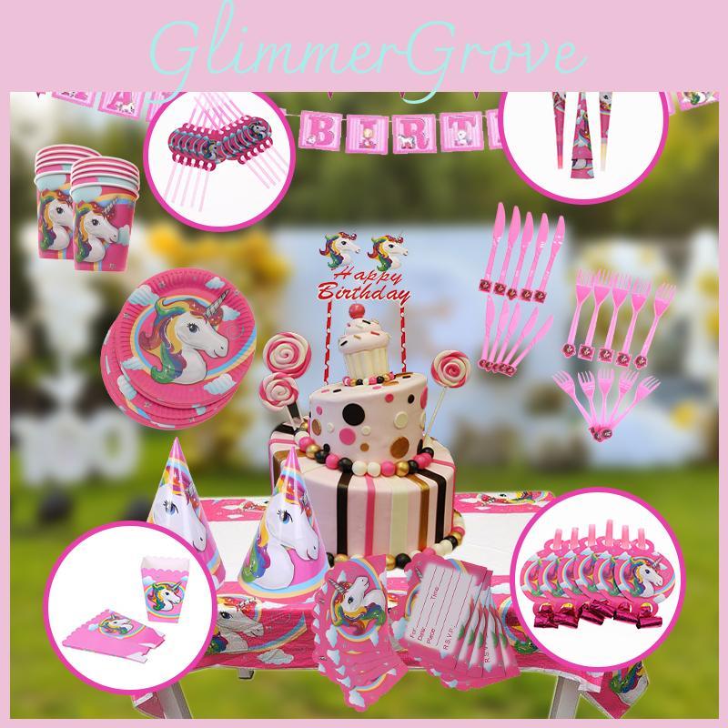 Magical Unicorn Kids Birthday Party Supplies Featuring Colorful Plates Cups And Banners