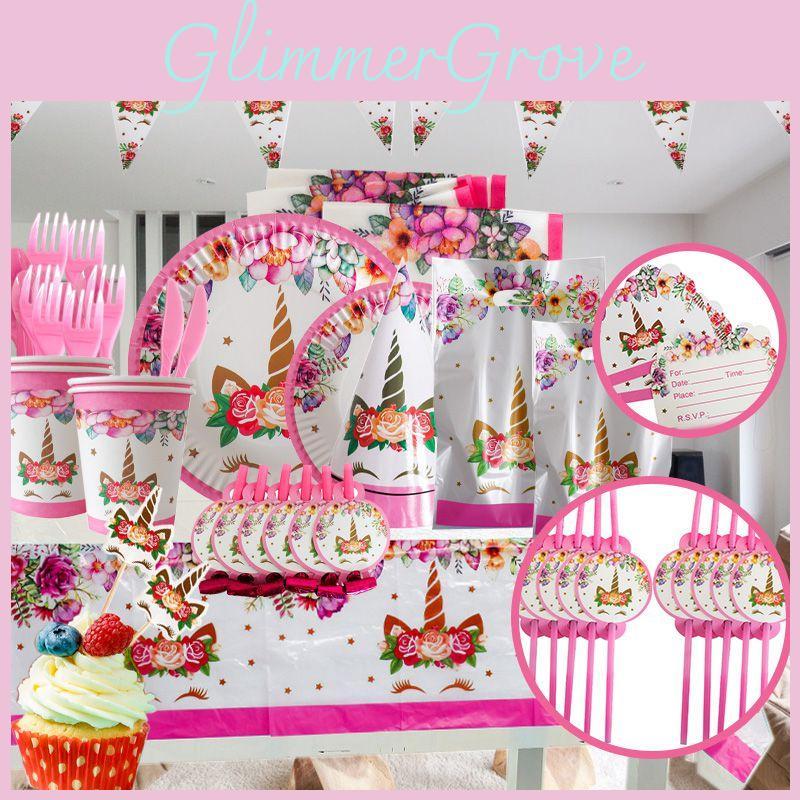 Wreath Unicorn Kids Birthday Party Supplies Colorful Tableware Plates Cup And Forks