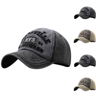 Spring Summer Men Baseball Cap Casual Distressed Washed Cotton Letter Embroidered Cap Bent Brim Dome Casual Sun Protection Hat