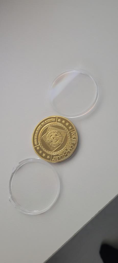 The case is broken, was wrapped in tape. The coin is heavy.