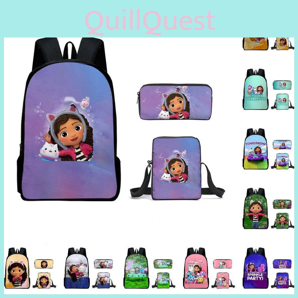 Gabby's Dollhouse Backpack Featuring Stylish Cartoon Design And Adjustable Shoulder Straps For Students
