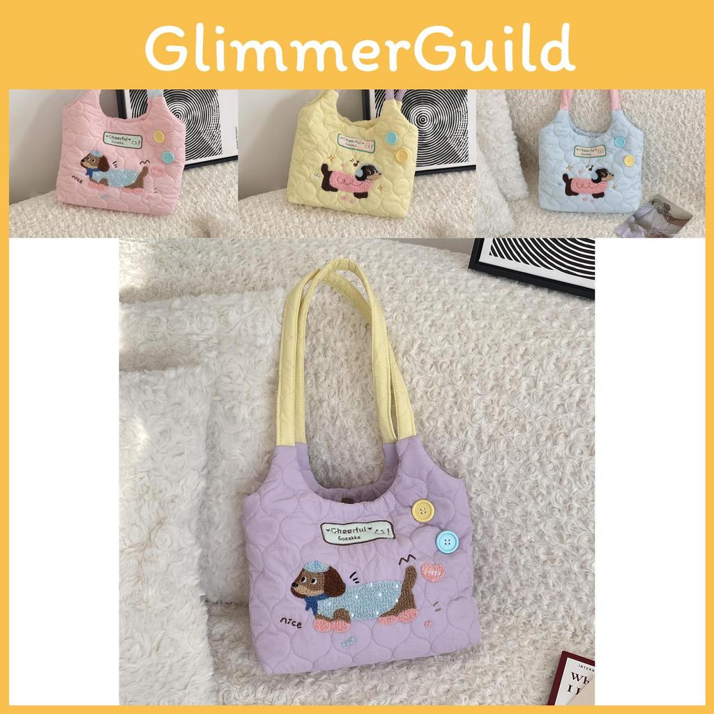 Trendy Street Style Student Tote Bag With Cute Embroidered Dog In Beautiful Hues