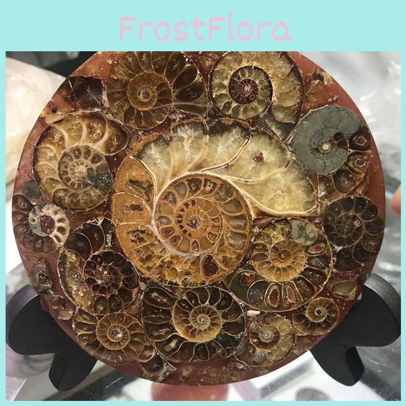 Exquisite 1pc Natural Ammonite Fossil Quartz Crystal Disk Shell Plate Conch Stand