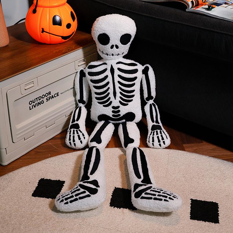 Creative Skull Throw Pillow Plush Toy Doll White Bone Doll Trick Funny Doll Halloween Gift