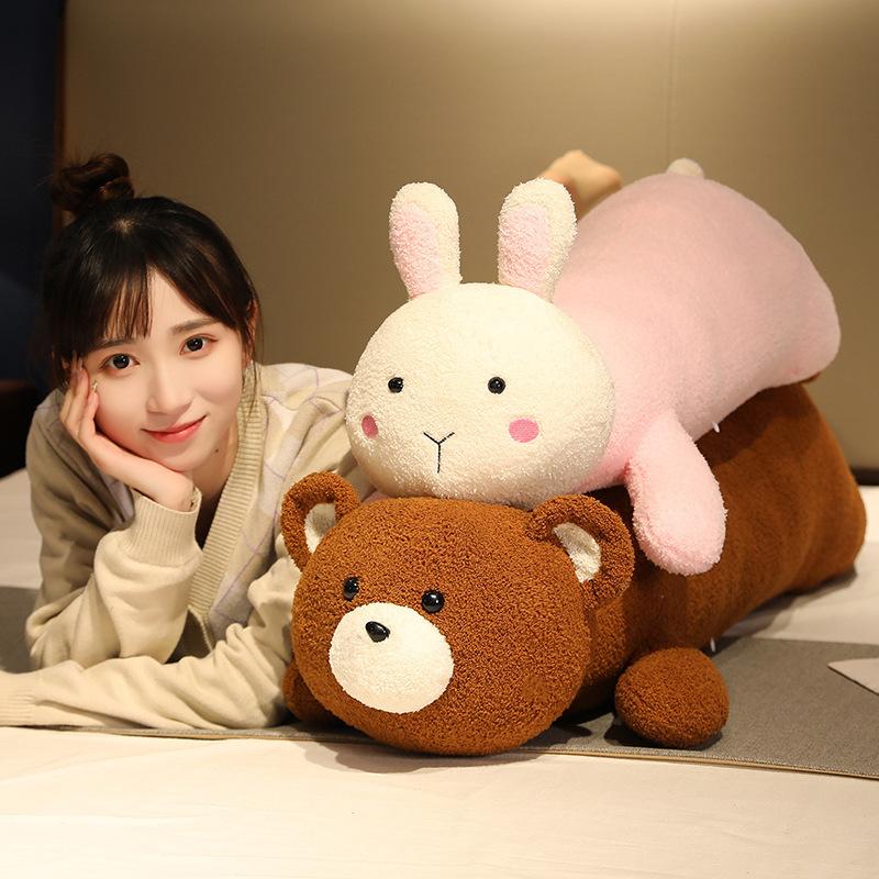 Large Animal Rabbit Lying Down Throw Pillow Plush Toy Bear Pink Pig Doll Girl Sleeping Soothing Ragdoll Doll