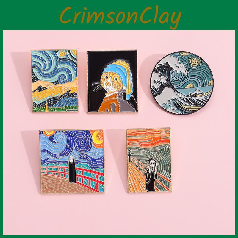 Creative Retro Oil Painting Cat Waves Brooch Charming Alloy Pin For Men And Women