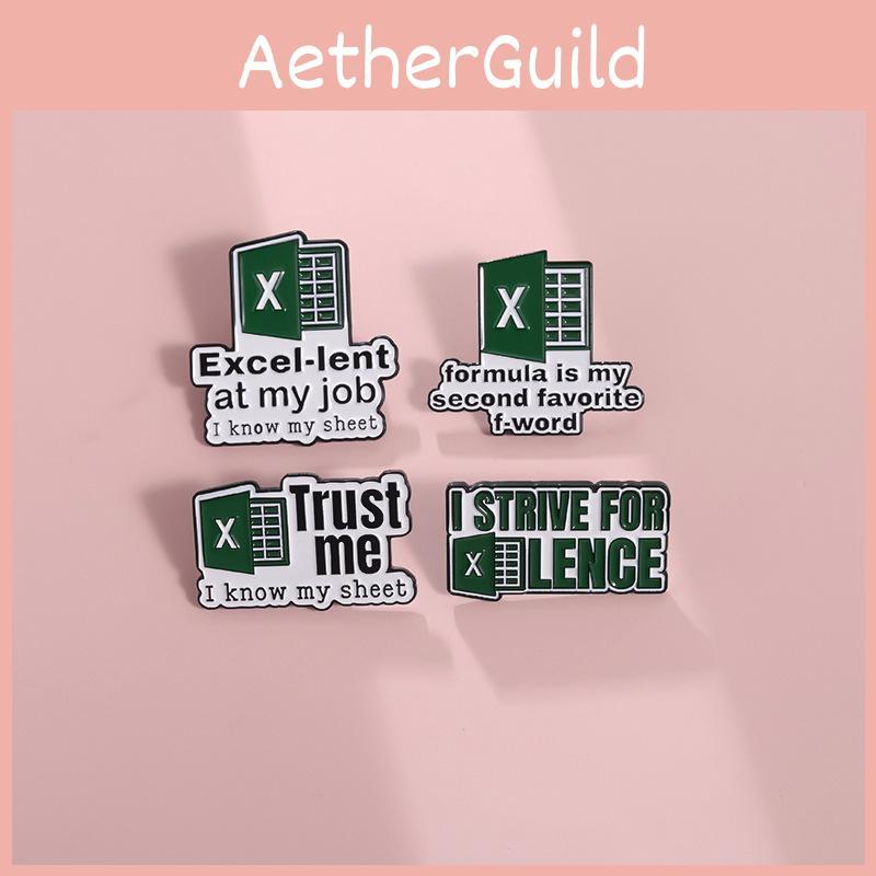 Creative Excel Spreadsheet Series Metal Badge Fun Green Letter Gift Accessory Pin