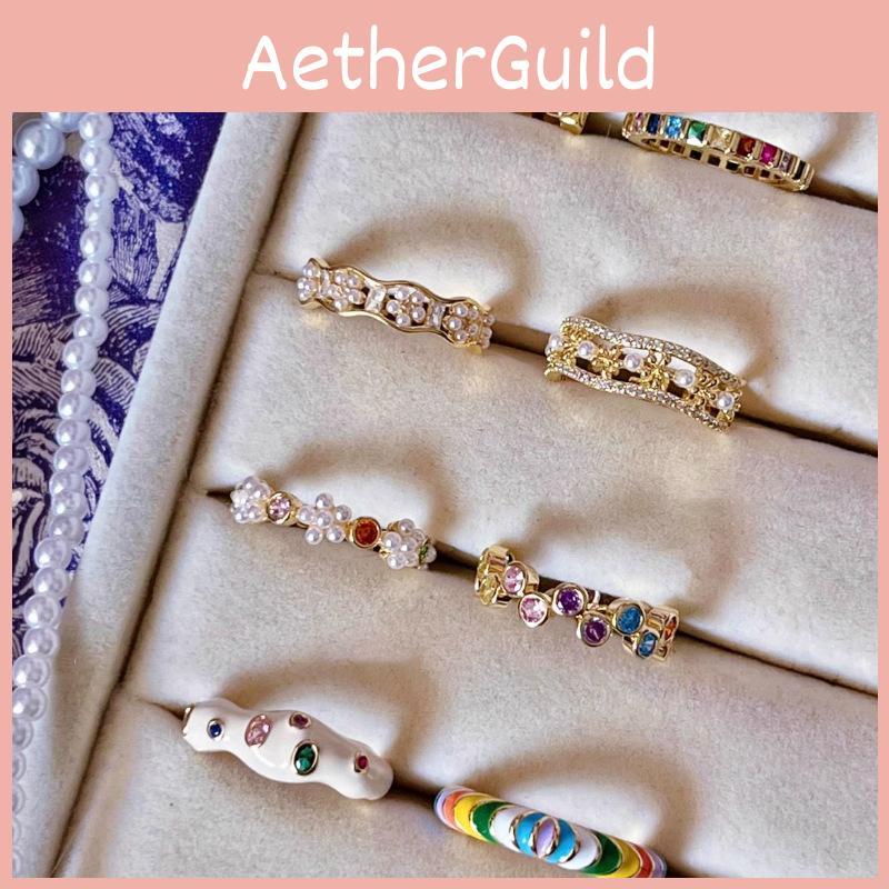 Trendy Geometric Open Ring With Colorful Sparkling Pearls For Ladies Fashion Accessory