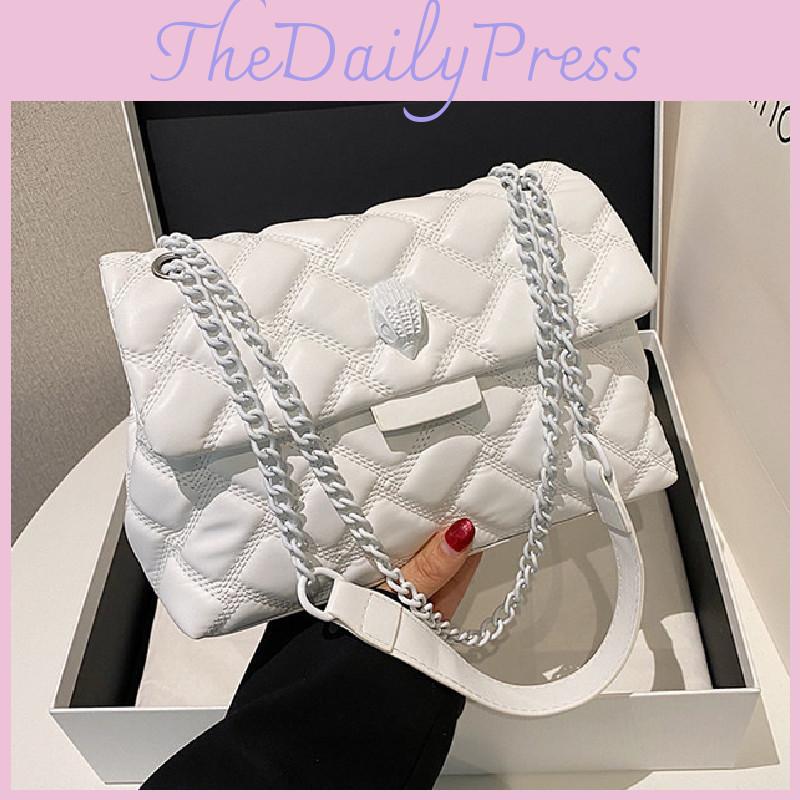 Trendy Quilted White Pu Handbag Stylish Shoulder Bag For Women Versatile Fashionable Use