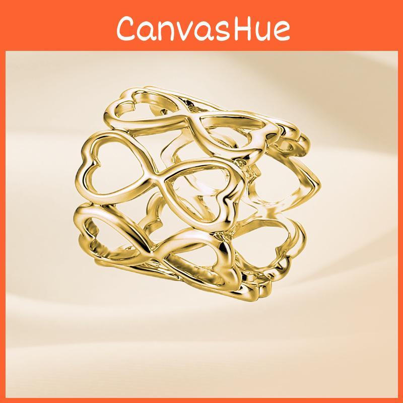 Elegant Double-layer Heart Scarf Ring Smooth Alloy Design For Women In Gold And Rose Gold
