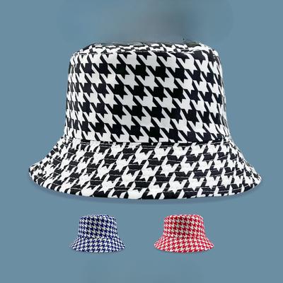 New Two Sided Double Sided Houndstooth Fisherman's Hat Personalized Printed Pot Hat Korean Hip Hop Street Dance Sun Hat