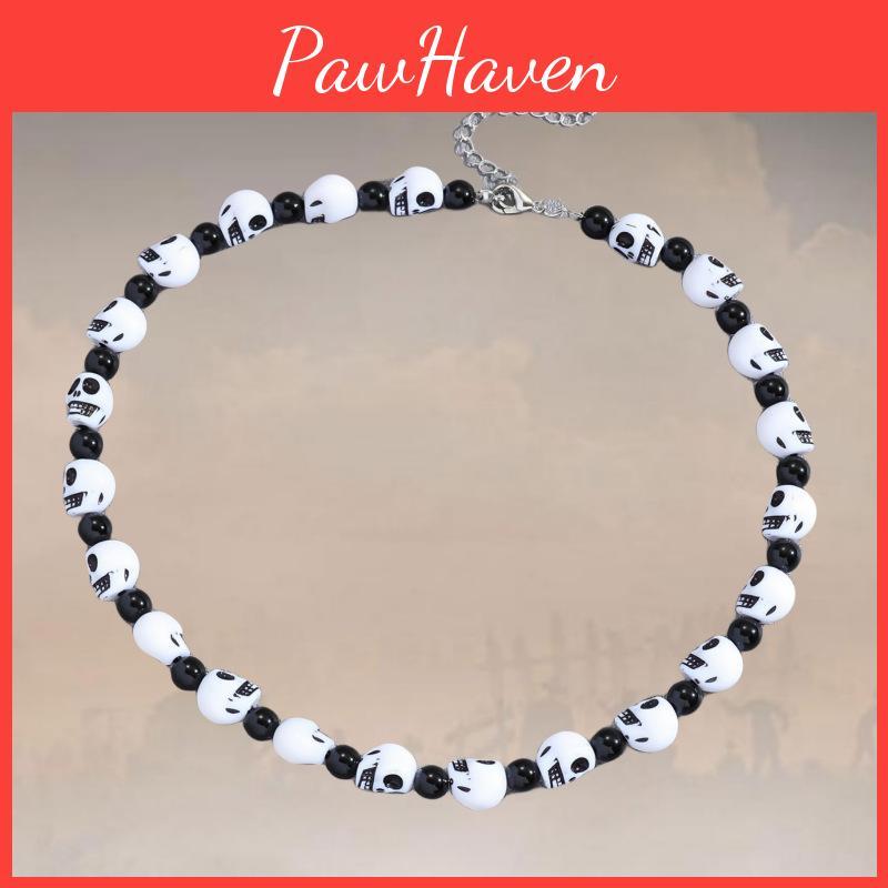Trendy Black And White Skull Pendant Necklace Perfect For Halloween