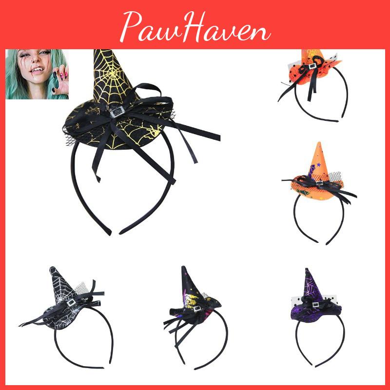 Elegant Halloween Witch Hat Headband With Spider Web Lace And Pumpkin Design