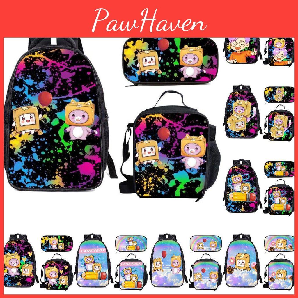 Lankybox Cartoon Lunch Bag Set 3 Piece Shoulder Backpack Package