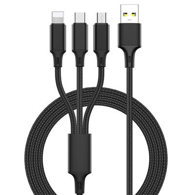 3 In 1 Fast Charging Cord For iPhone Huawei Micro USB Type C Charger Cable 1.2m Multi Usb Port Multiple Usb Charging Cord