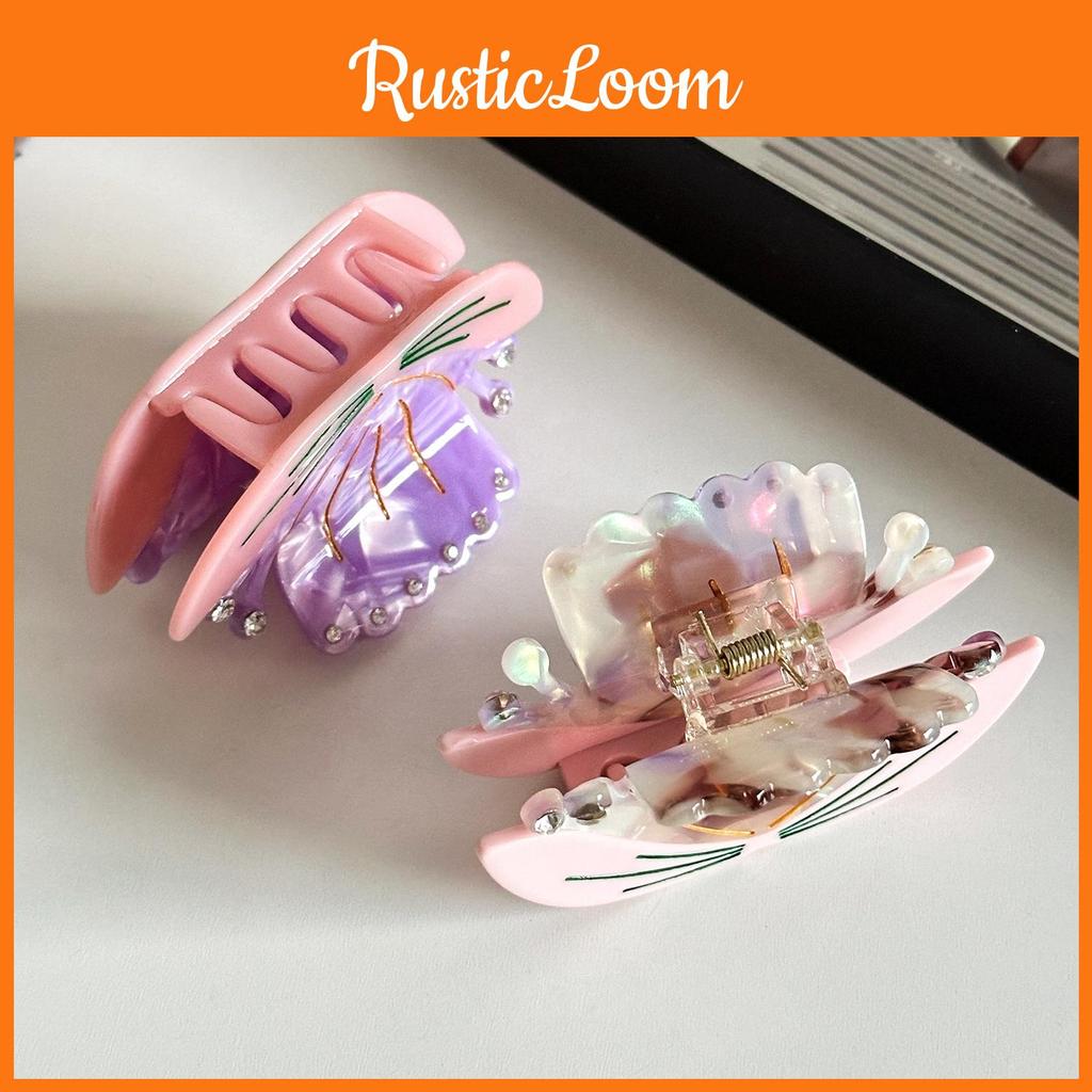Elegant Floral Design Acetate Hair Claw Clip With Diamond Accents For Women