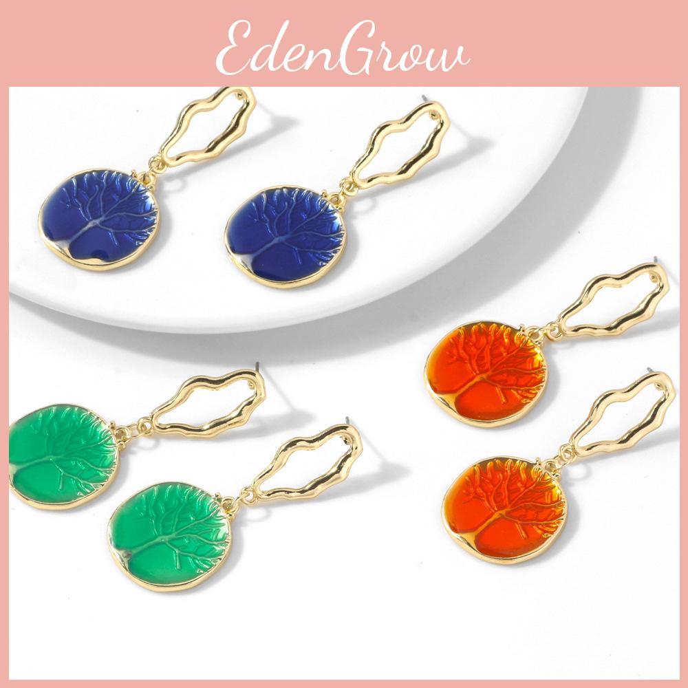 The intricate design embodies the essence of the Tree of Life, symbolizing growth, strength, and beauty. The circular shape is meticulously electroplated to ensure a long-lasting sheen and vibrant appearance. Available in three stunning colorsred, green, and bluethese earrings not only complement various outfits but also add a splash of color to your ensemble, making you stand out effortlessly. The dripping oil technique enhances the vivid hues, creating a captivating visual appeal that is hard to ignore.