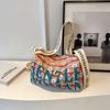 Cute Painted Floral Canvas Bag 2023 New Casual Shoulder Bag Cross-border Fashion Bear Grid Blue Red