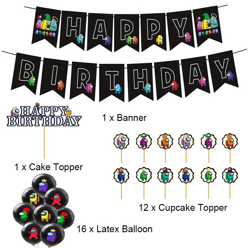 Party Theme Birthday Decor Suit Supplies Set Balloon Banner Cake Topper