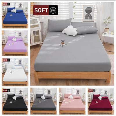 High Quality Fitted Sheet Multiple Colors Super Soft and Breathable Mattress Covers Protector Sofa Cover Single/Double Bed Sheet Solid Color Bed Cover