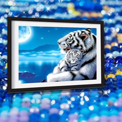 Embroidery Cross Stitch Tiger and Her Child Home Decor Gift Round Diamond Painting Free Cross Stitch