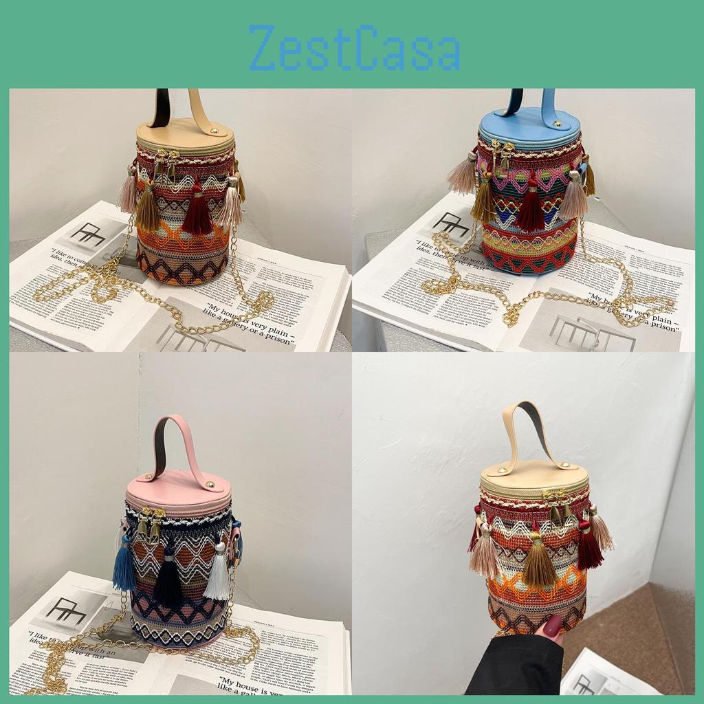 Small Round Crossbody Bag For Women With Pu Material And Fringes For Street Style