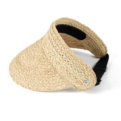 Straw Sun Visor Hat Stylish Long Brim Cap for Women CA553 [White Fang] (Black)