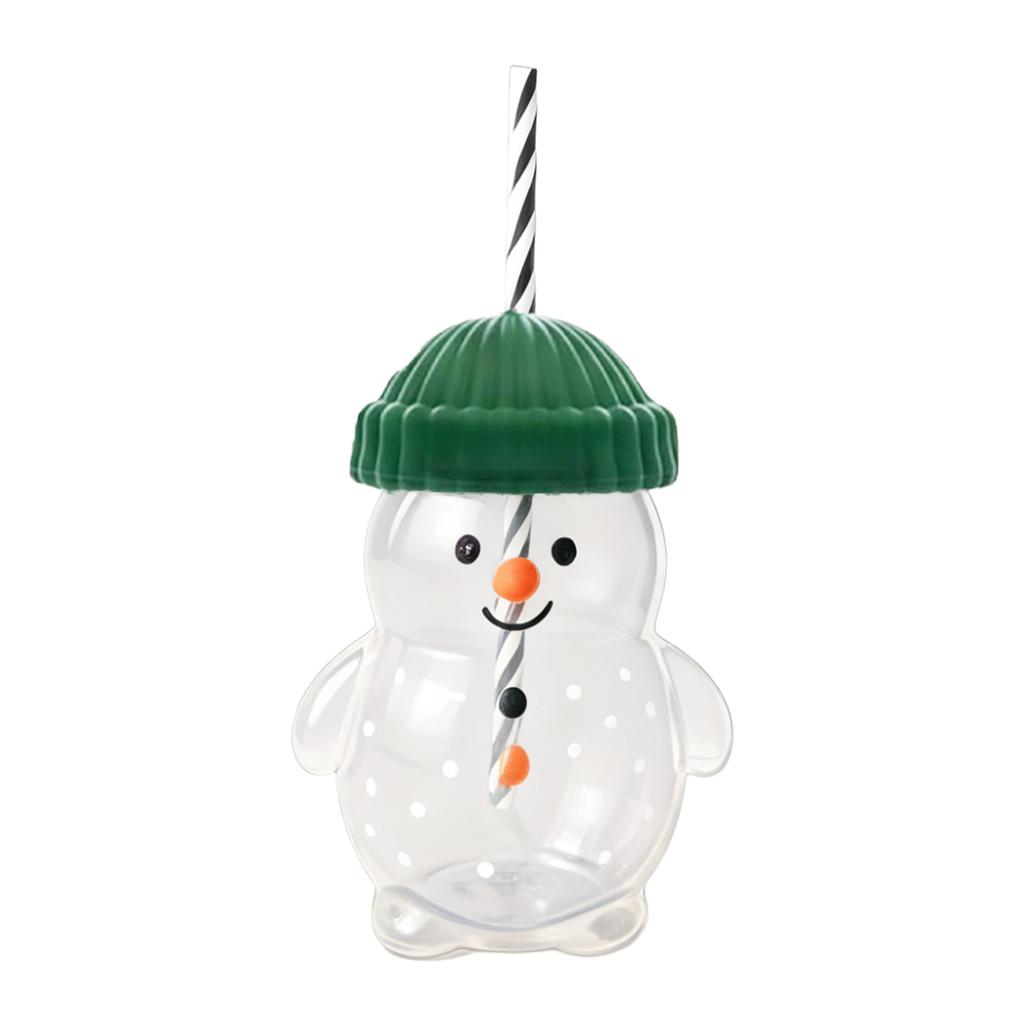 Christmas-themed Glass Straw Cup With Cute Transparent Design And A Green Hat - An Adorable Water Bottle.
