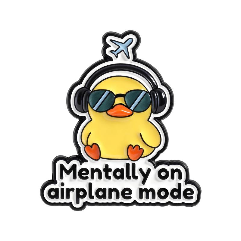 Mentally On Airplane Mode Enamel Pins Cute Cool Duckling Brooches Lapel Badges Cartoon Introvert Jewelry Gift for Friends