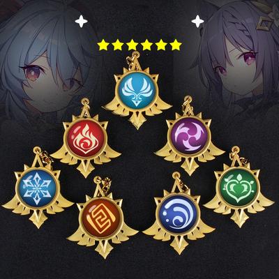 1PC Keychain Luminous KeyRing Game Genshin Impact Eye Of Original God Toy Vision Lnazuma 7 Element Weapons Ganyu