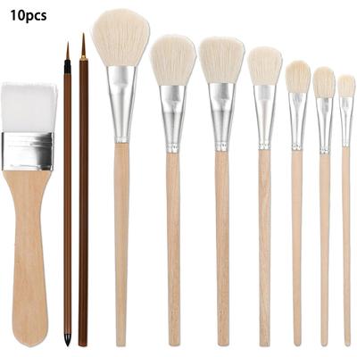 10 Pcs Brush for Acrylic Painting Goat Hair Oil Painting Brushes Acrylic Blending Brush with Wooden Handle for Watercolor Face Body Art Pottery