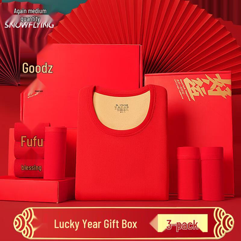 Lucky Red Fleece-Lined Thermal Set with Underwear & Socks