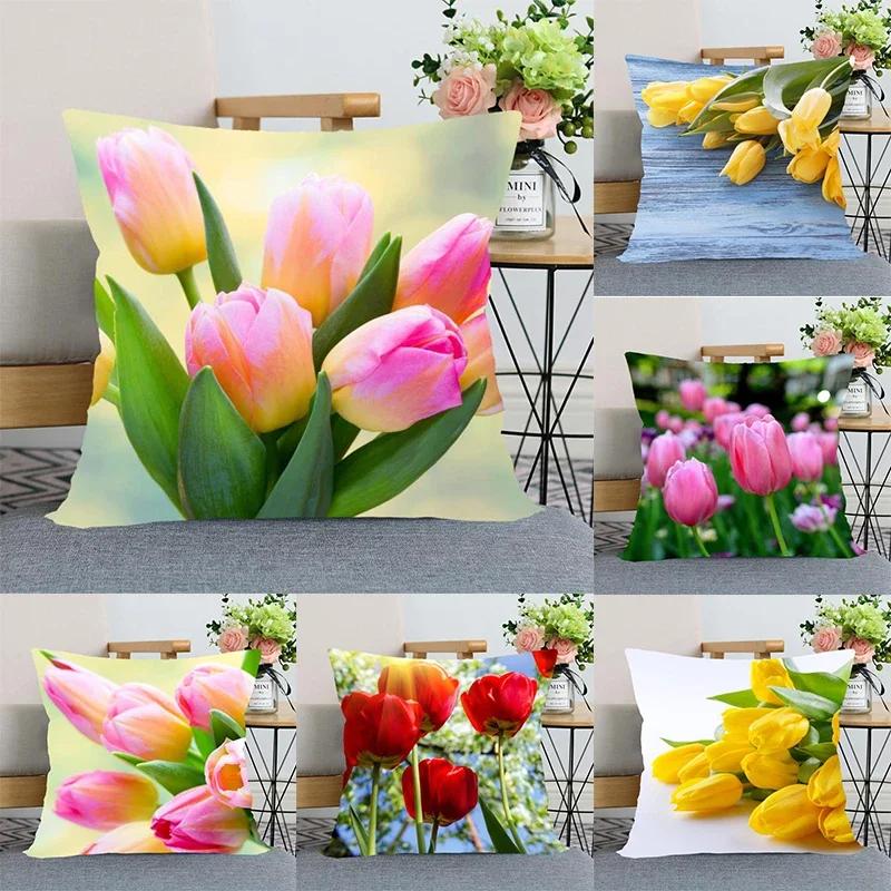 "Floral Tulip Pillowcase, Soft Cotton - Vibrant Flower Design for Spring Decor, Comfortable and Stylish, Perfect Gift for Home"