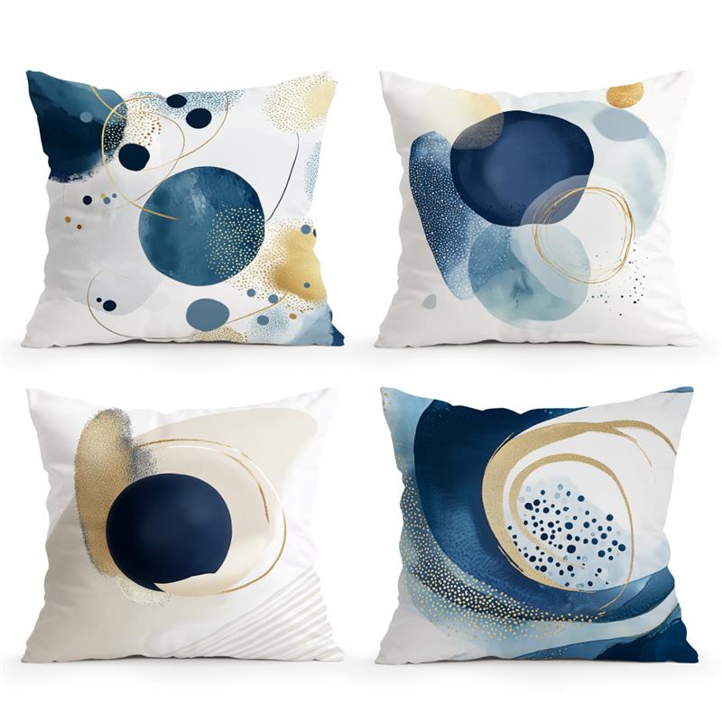 Home Decor Abstract Blue & Gold Geometric Pillow Covers Pattern Cushion Cover Suitable for Sofa Bedroom Car Pillow Cover