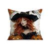 Home Decor Halloween-themed Witch & Cat Pattern Pillow Covers Pattern Cushion Cover Suitable for Sofa Bedroom Car Pillow Cover