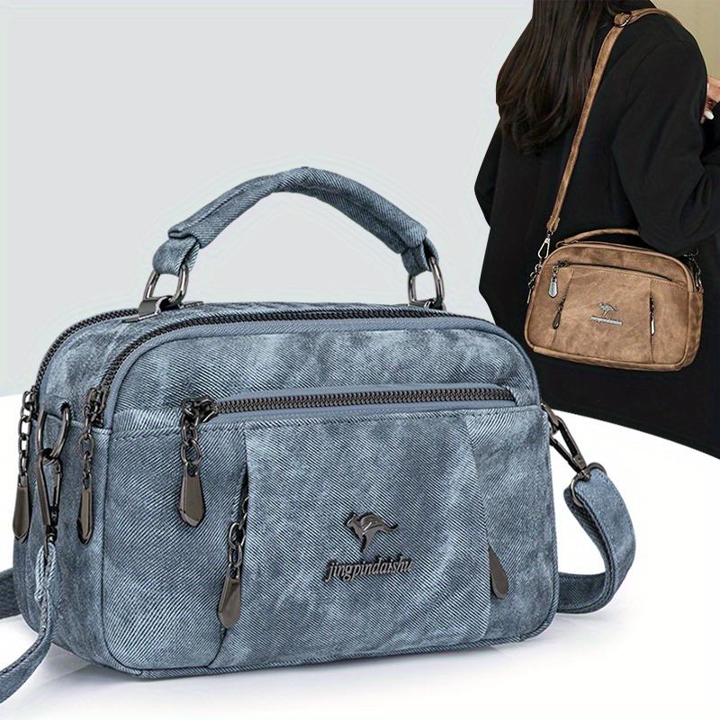 Women's Vintage Shoulder Bag Crossbody Purse with Dual Zipper Compartments Women's Canvas Crossbody Bag Multi-Zipper Pocket Handbag