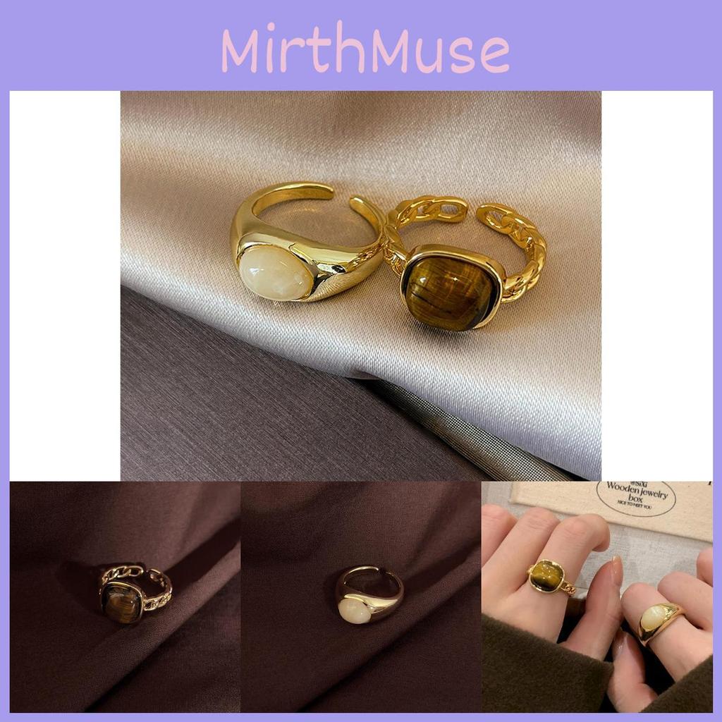 Vintage French Natural Stone Open Ring For Women Unique Design Adjustable Fashion Accessory