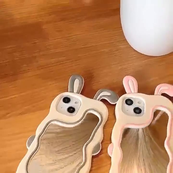Cute Bunny Ears Mirror Phone Case For iPhone 16 15 14 Plus 13 12 11 Pro Max Shockproof Silicone Case