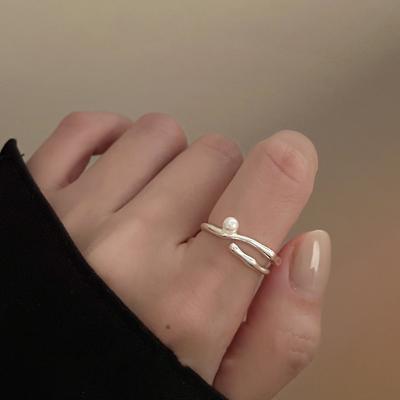 S925 Silver Pearl Ring: Women's Niche Design, Stackable Open Band, High-End Fashion, Index Finger Accessory