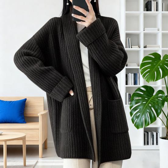 The sweater coat crafted from a premium blend of polyester and spandex delivers exceptional comfort, stretch, and warmth. Designed with a sleek, minimalist open-front style and long sleeves, women's cardigan offers both softness and a flattering fit.
