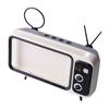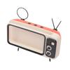 The phone holder with stereo speaker music player, which is a retro TV shape. Not only is a holder for 6.4 to 6.7 inches smartphone, but also a great home decoration, stylish appearance provides modern life with you