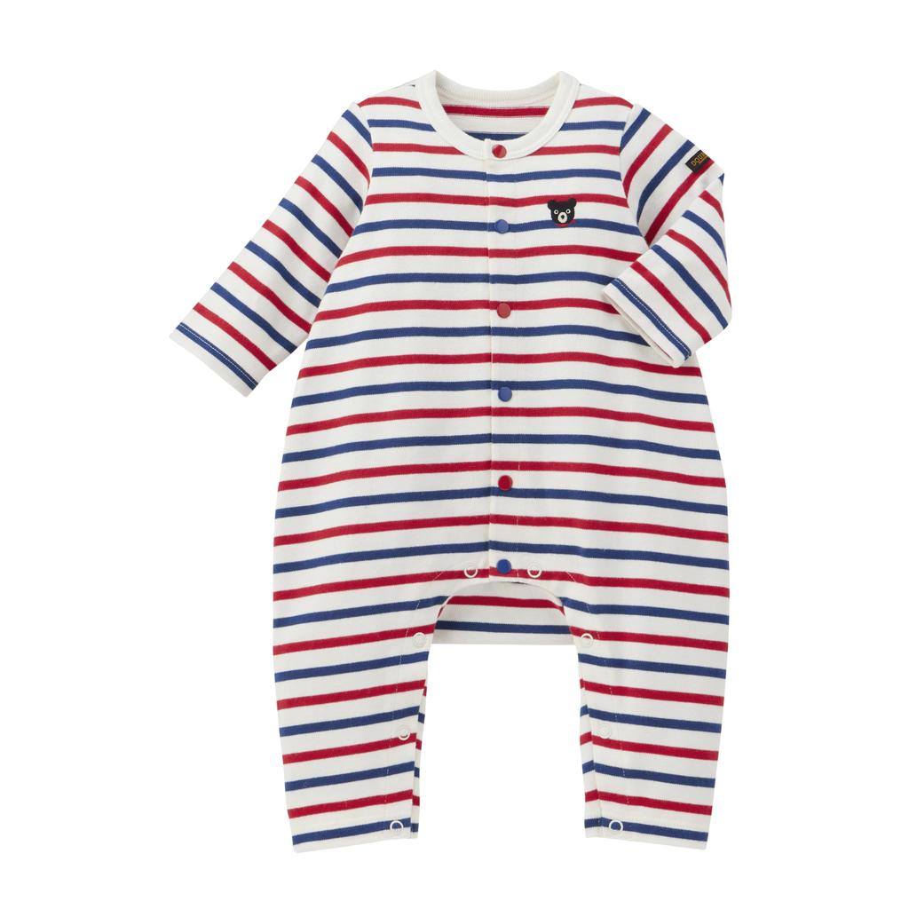 This coverall (long-sleeved romper) from the "D-Basic" series is made with high-quality materials and a simple design. It features a black bear design on the chest. Made from a slightly thick jersey material, it can be worn in all three seasons: autumn, winter, and spring. It's designed with room in the buttocks. It's easy to put on and won't restrict the movement of active children. It also has hook-and-eye closures under the crotch, making it convenient for changing clothes and diapers.