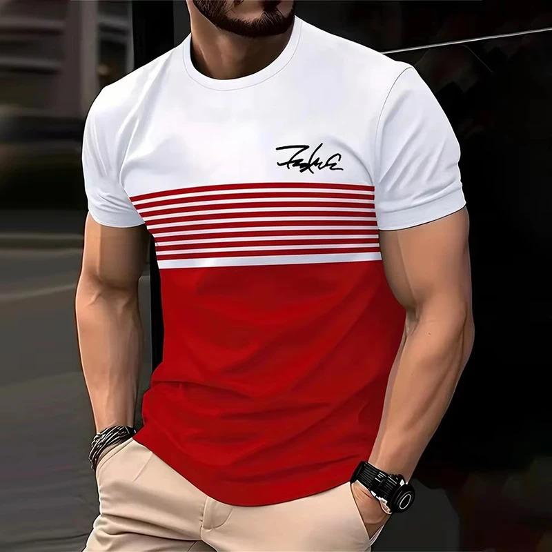 Fashionable Striped 3D Printed Short-sleeved T-shirt Spring/Summer Casual Collar Crew T-shirt Soft and Breathable T-shirt For