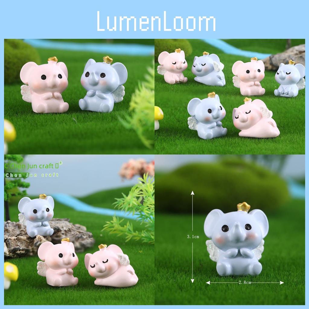 Cute Pink And Blue Resin Elephant Figurines Miniature Cartoon Animal Decor