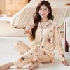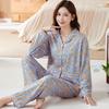 Women's Pajamas Spring and Autumn Imitation Cotton Long-sleeved Autumn New Large-size Cardigan Set Mother Loungewear