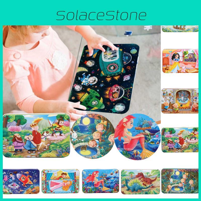 The puzzle set comes in a compact iron box which easy to carry and store. The pieces are made of safe and eco-friendly material that ensures your child's safety.