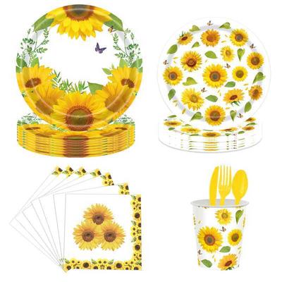 Sunflower Party Tableware Set, Disposable Paper Cups and Plates, Birthday Party Supplies